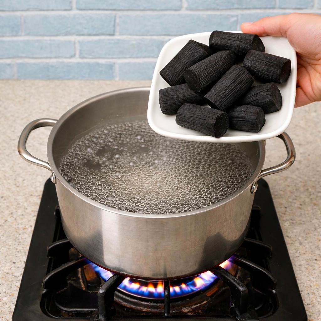 El carbón activado comercial pasa por procesos muy específicos para lograr su eficacia.El carbón casero, incluso hervido, no alcanza ese mismo nivel.