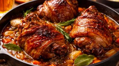 El método poco conocido para preparar codillos de cerdo braseados en cerveza, tiernos y llenos de sabor.